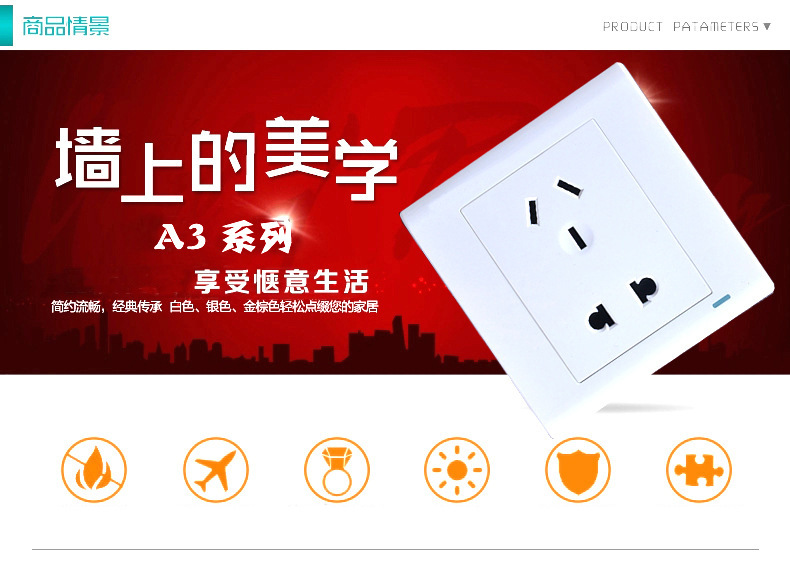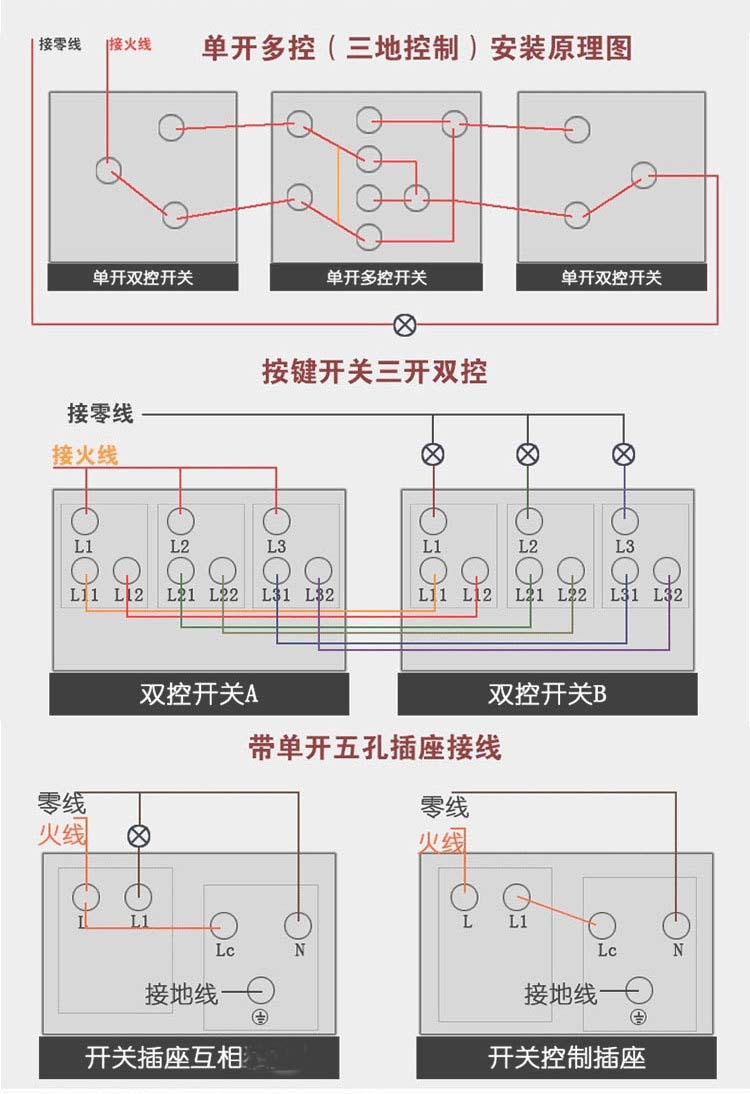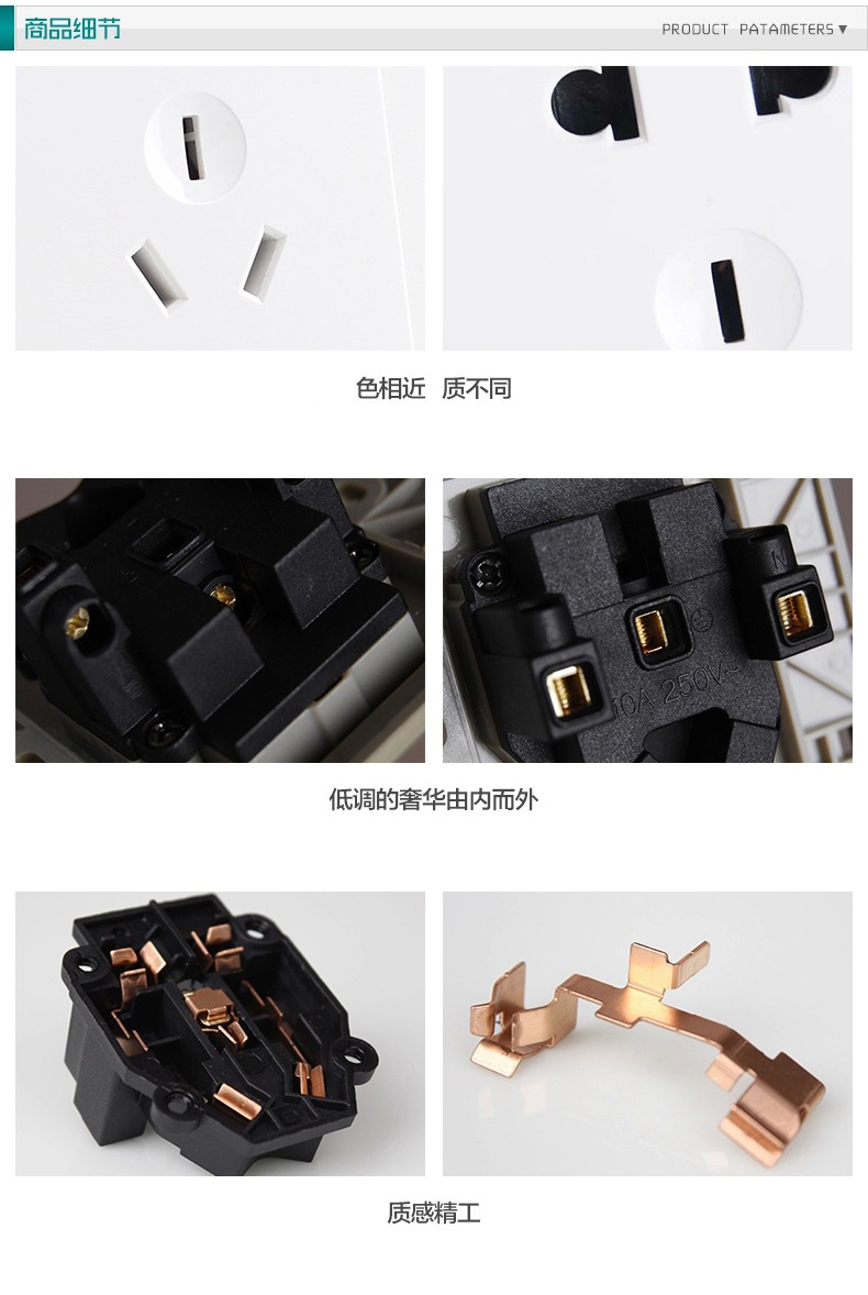 一般般家庭常用的三孔插座有220V-10A、220V-16A。型号有三种: 120型,86型,118型三种。三孔插座上有**的保护接零(地)插孔,在采用接零保护时,有人常常仅在插座底内将此孔接线柱头与引入插座内的那根零线直接相连,这是极为危险的。因为万一电源的零线断开,或者电源的火(相)线、零线接反,其外壳等金属部分也将带有与电源相同的电压,这就会导致触电。因此,接线时**接地插孔应与**的保护地线相连。