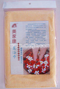 www.meijk.com美家康足浴巾采用涤锦复合超细纤维织造,其纤维细度是头发丝的1/200,是普通纤维的1/20,纤维强度是普通毛巾纤维的5倍(耐用性),吸水速度和吸水量是普通毛巾的7倍。普通纯棉毛巾长时间使用会发酸、变味、变色、变硬而失去弹性,美家康超细纤维足浴巾纤维纤度高、密度大,长期使用仍能保持产品的柔软性和高吸水性,并且不掉毛,不生菌。本产品接触肌肤时能够深入皮肤深层,吸附油脂污垢,疏通被阻塞毛孔,使皮肤呼吸顺畅,各种细菌、皮肤真菌失去耐以生存的环境。从而加快血液循环,促进新陈代谢,改善肤质,达到保健效果。