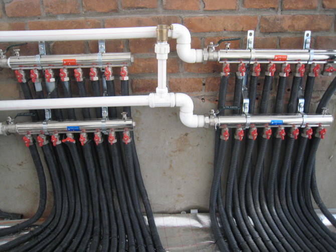 2.管路系统:承担热量输送和加热地板功能。由于有大量的管路暗埋在地面,合适的管路材料是系统安全运行的重要保障,常用的管路材料有PB、PE-RT和PEX等。选用时除考虑承温承压能力及较好的热传导性外,还要重点考虑维修质量和方便等因素。