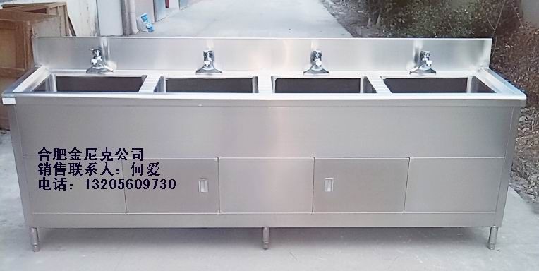 不锈钢医用洗手池:采用进口优质304不锈钢板制造,国际标准,静音防溅,园弧结构,恒温出水,标准型号为1人、2人、3人洗手池,可定制非标各类洗手池。说明:不锈钢材厚度为1.2mm或者1.5mm,自带50L电热水器,可自由设定出水温度,出水分膝碰和感应两种方式,洗手槽采用特制的坡度设计,可有效防止水溅到洗手池外,各水嘴独立设置,不影响其它水嘴的使用,方便使用及维护