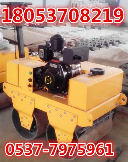手扶式汽油压路机自重525kg,全长2100mm,全高1080mm全宽820mm,轮径430mm轮宽600mm,手扶式双轮压路机以3km/h的速度向前行走,振动频率70hz激振力30KN爬坡能力30%,能压实泥土25cm压实沥青15cm,**大压实面积达1080平方米/小时,手扶式小压路机采用GX270本田发动机功率是9马力,燃油量0.8l/h水管容量28升