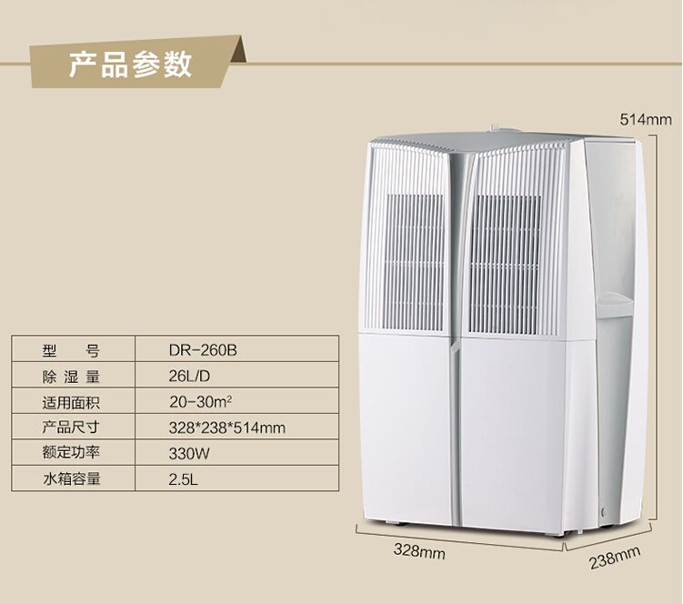 型号: DR-260B**大日除湿量: 1.08L/h水箱容量: 2.5L