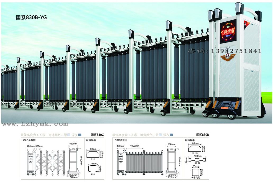 泸州惠元门控设备有限公司专业制作安装:标准型电动伸缩门\联动伸缩门\豪华全不锈钢自动门(304#/202#)\异型不锈钢型材(精抛系列)\铝型材电动伸缩门\充电式弱电电动伸缩门等多种造型可选,配置齐备!质量保证,可按要求定制规格!电动平移门,电动平开门,充电式安全电动伸缩门,不锈钢或铁质,提供整门镀锌表面处理,是企事业单位,别墅小区**实用门闸之一,可以定制造型,可以加装各种类型驱动马达,(如链轮式,齿条式,液压式,扇型运作式,可以选装进口驱动系统,)根据场所要求设计双轨道、单轨道或纯无轨!全国伸缩门十强厂商专业制作,自产自销,服务完善!能够为周边地区客户提供优质产品和**服务,详情请来访或来电咨询,我们将竭诚为您服务!咨询热线:0830-2759175