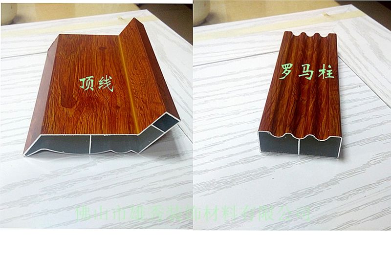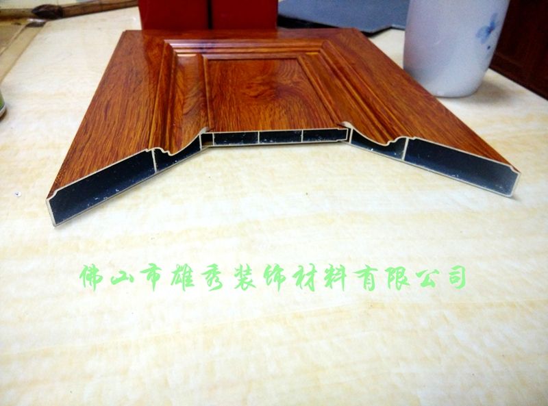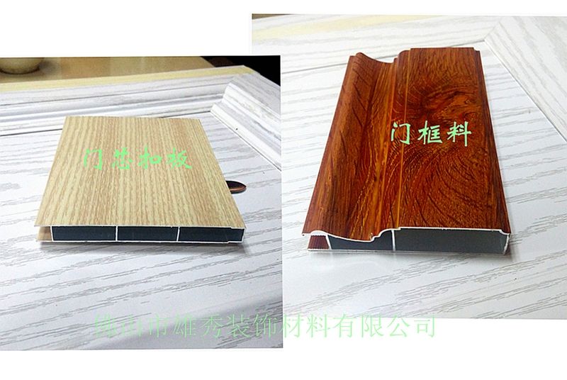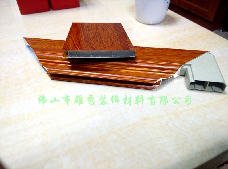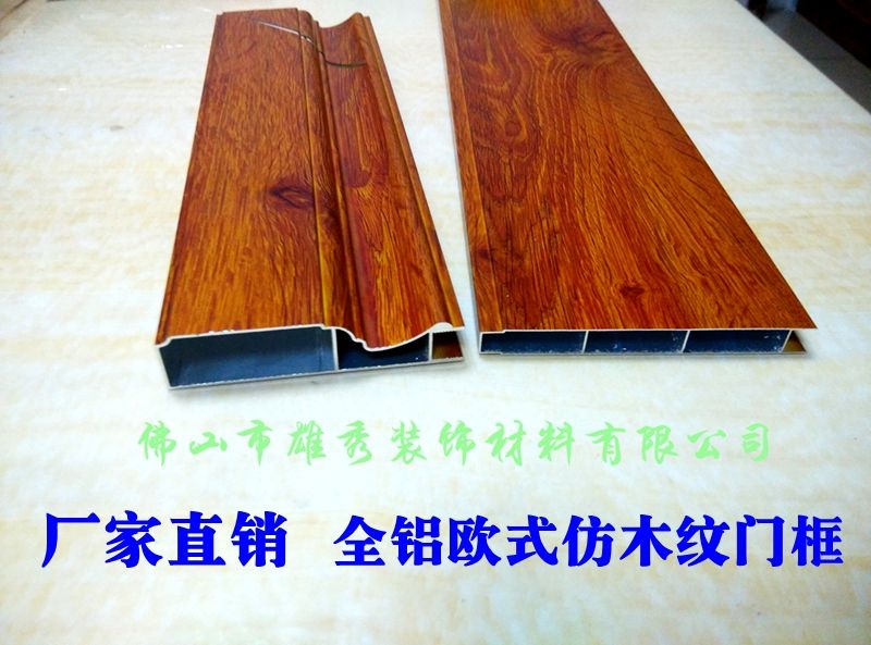 雄秀新款木纹铝合金橱柜铝型材,木纹铝合金柜体铝材,,两种铝材就可以做成橱柜门,木纹铝门框架加上角码和木纹扣板就可以做成成一扇铝合金门 ,简易方便,质量好,结构坚固,不变形,防水防火。