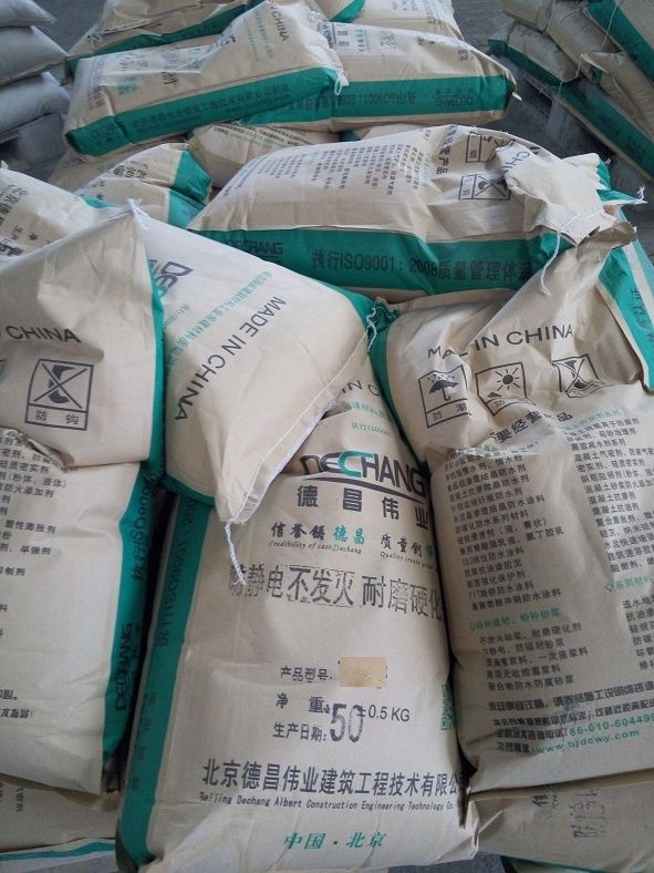 防静电不发火耐磨水泥地坪硬化剂通过严格质量控制生产出的预拌粉剂,是一种在工地即时可用的含特殊水泥、是一种含防静电粉和不发火矿物骨料及不发火中间体的耐磨地面材料,将其均匀地撒布在即将初凝阶段的基层混凝土表面,经专业手段施工,从而使其与混凝土地面形成一个密实、无孔、光亮的整体,该面层十分坚硬并高度耐磨。特点是整体一次性浇筑施工可完全避免做找平层常出现的问题,诸如起鼓、收缩裂缝等。施工采用干撒式方法,确保该耐磨层与基面砼整体结合。