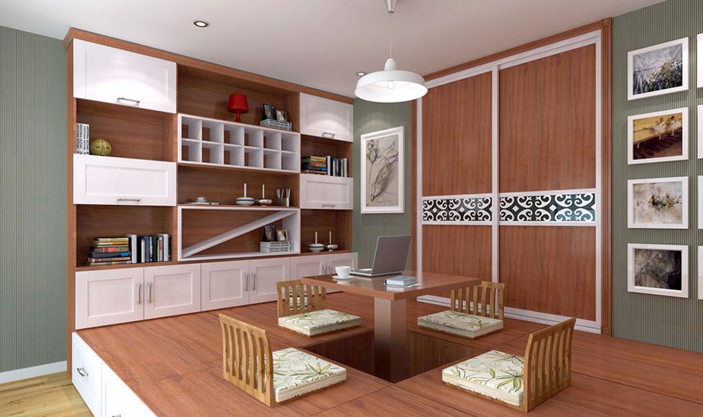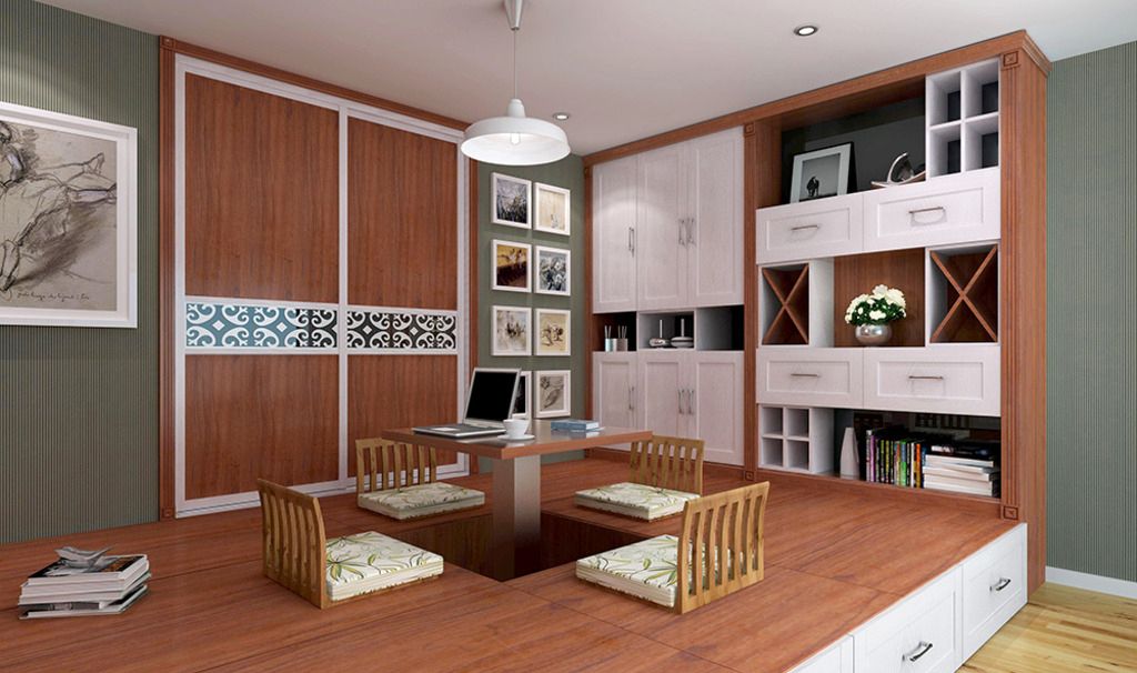 这款榻榻米主要用于(广泛用于)家里卧室和书房装修,接待客人也是一个很好的选择,