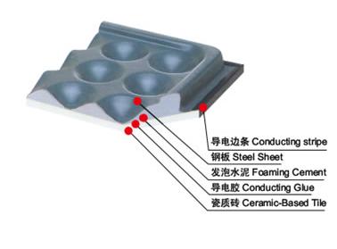 全钢抗静电地板采用优质合金冷轧钢板,经拉伸后点焊成形。外表经磷化后进行喷塑处理,内腔填充发泡填料,上表面粘贴高耐磨防火高压层板(HPL)或PVC板,四周镶嵌导电边条。