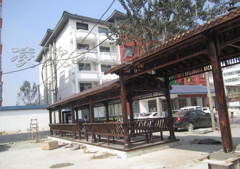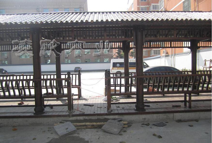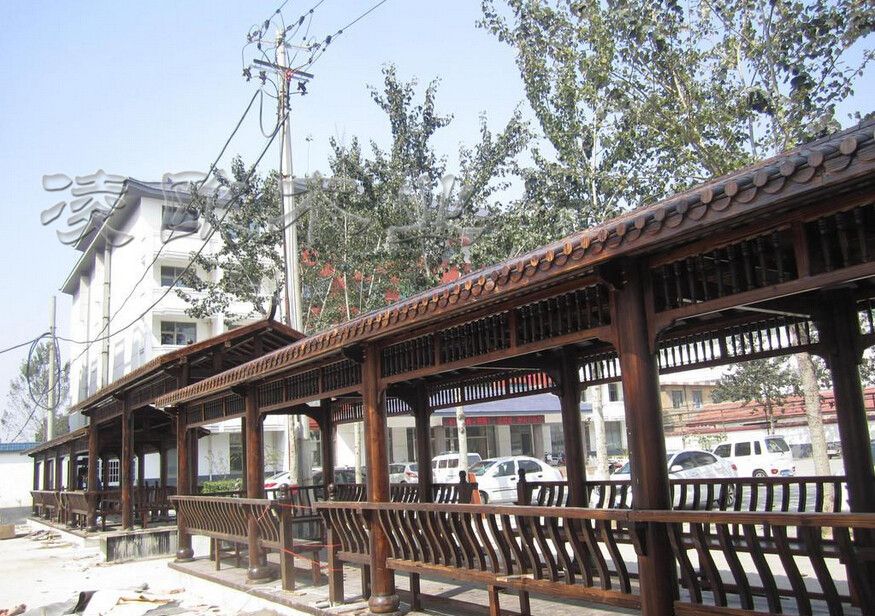 学校小青瓦景观长廊 防腐木长廊订做