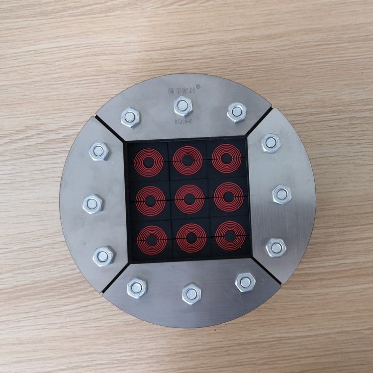 □RM型为圆形穿隔密封系统,由两个半圆形可调节多径模块组合,系统内集成有压紧装置,可安装在现有的电缆线及管道周围。