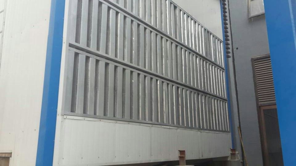 消声百叶窗由安装在金属框架内的通风百叶片组成,通风百叶片内装吸声材料,各叶片间留有通风间隙。开口面积经过精心设计,以达到**大的空气流量和**好的消声特性。