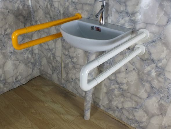 无障碍扶手 ,采用的彩色抗菌尼龙和不锈钢管复合而成,专为残障人、老人、病人、孕妇等体弱人士卫浴辅助和行走辅助而设计