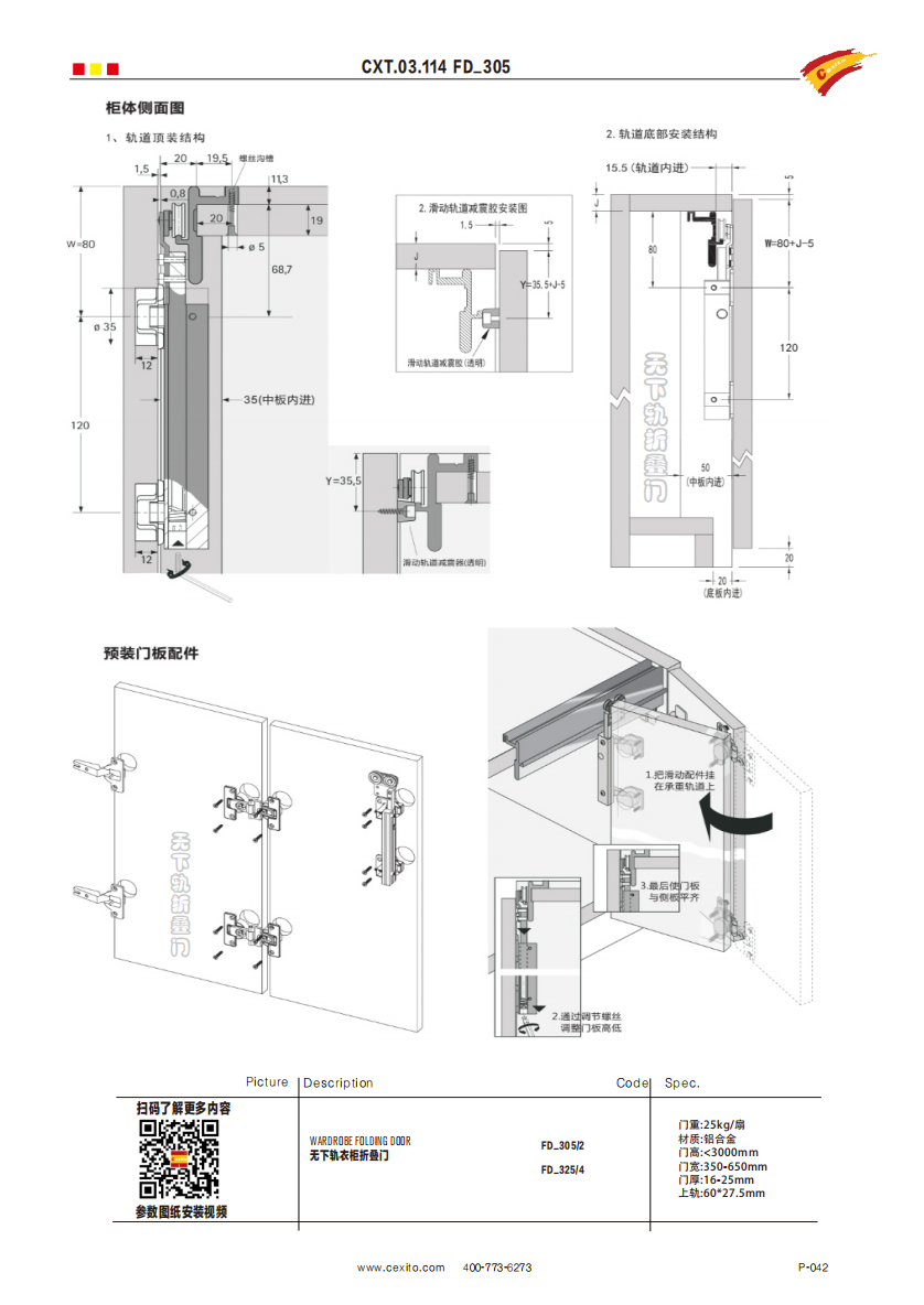 无下轨衣柜折叠门配件衣帽间推拉移门过道房门橱柜吊轮滑轨道五金