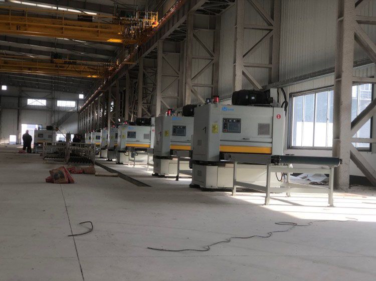 打磨装置主要由前后两道砂架组成。每道砂架主要包括砂辊,涨紧辊、涨紧气缸、摆动气缸、砂带摆动对中调整座、电机,轴承,光电开关,砂带及配套安装件等。
